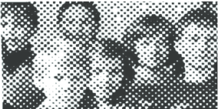 In Fig. 6.6 a picture as printed in a newspaper is shown. The printing process only uses black ink on white paper. The ‘illusion’ of gray values pops up in our brain when viewing the newspaper at such a distance that the human visual system blurs the image into a gray value version. That is why the image is rendered quite small on your screen. Click on the image to see a larger version where the ink blots are clearly visible.